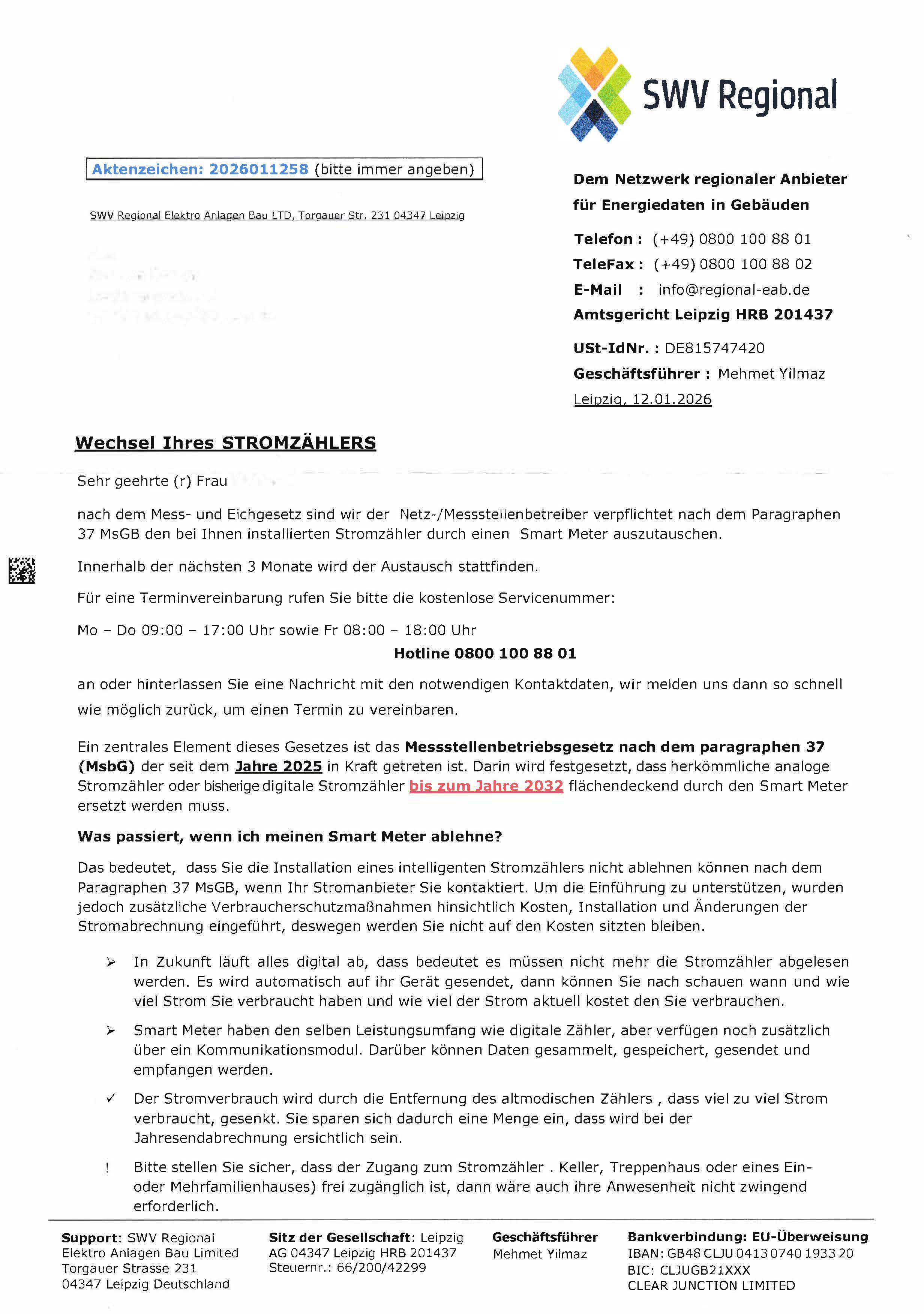 Vermeintlich notwendiger, kostenpflichtiger Zählerwechsel ist gegenstandslos.