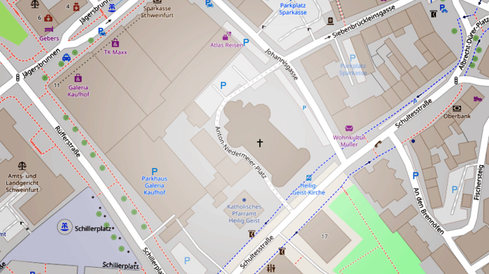 Im Verlauf der Baumaßnahme sind Änderungen in der Verkehrsführung in der Schultesstraße erforderlich. So werden temporär die Fahrbahnen im Bereich vor der Heilig-Geist-Kirche von vier Spuren auf zwei Spuren verringert. Der Verkehrsfluss in beide Richtungen bleibt für diese Zeit weiterhin gewährleistet. Zudem sind zeitweise auch Einschränkungen für den Fußgänger- und Radfahrverkehr in diesem Bereich notwendig.