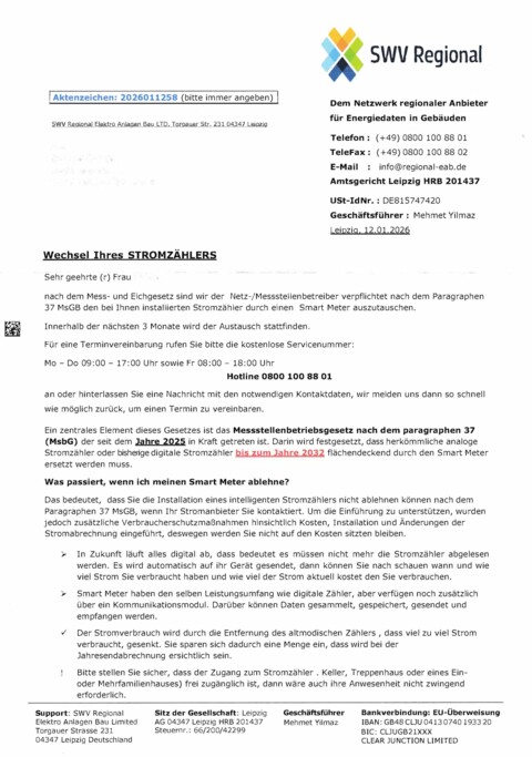 Die Stadtwerke Schweinfurt befinden sich bereits in engem Austausch mit der Polizei, um alle betroffenen Kundinnen und Kunden vor Schäden zu bewahren.