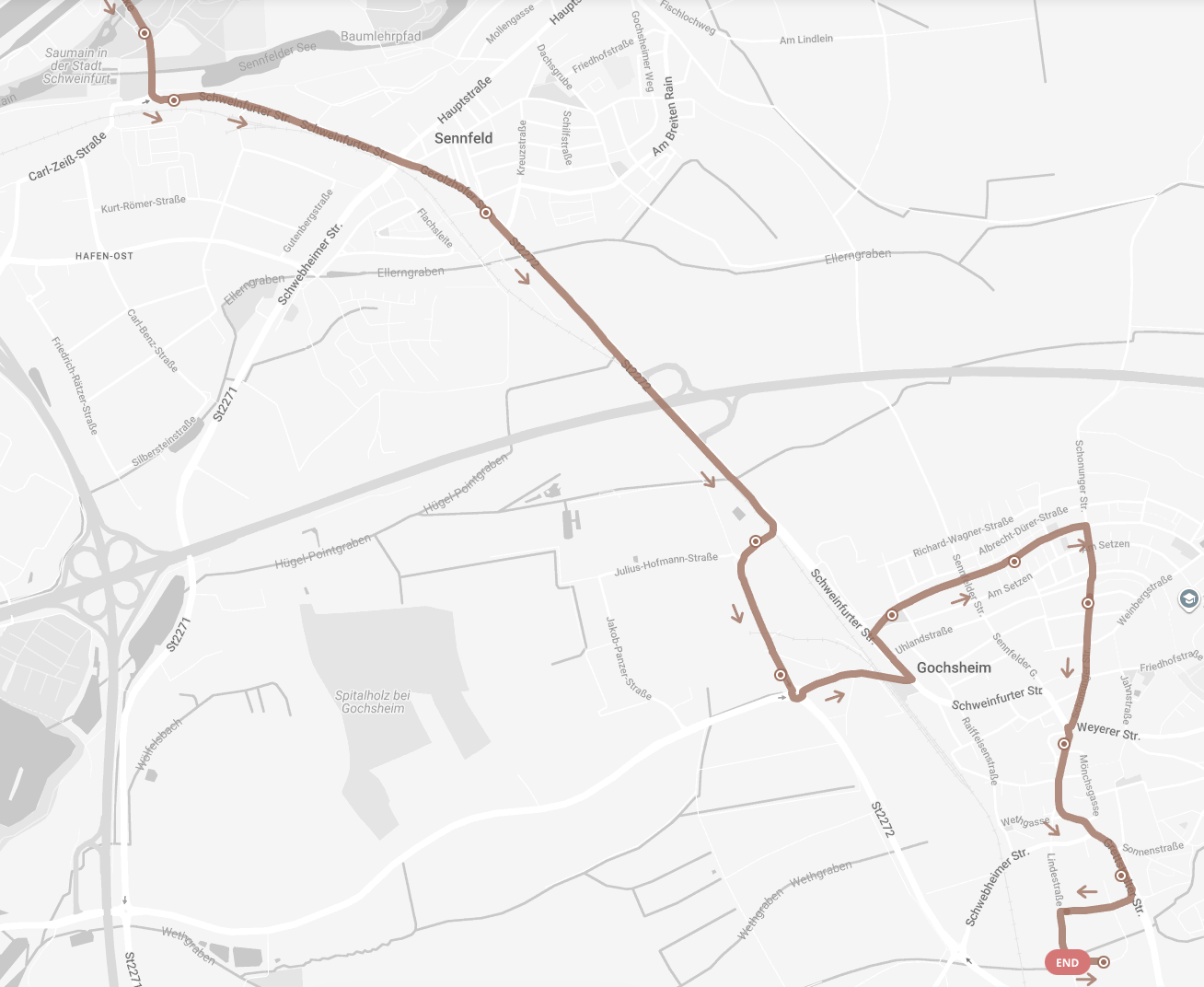 - Alternativ können die Haltestelle Gochsheimer Höhe in Sennfeld, Sennfelder Bahnhof oder die Linie 145 genutzt werden.