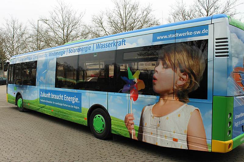 Details zu den verschiedenen Möglichkeiten der Gestaltung Ihrer Busaußenwerbung entnehmen Sie bitte unserem Flyer.